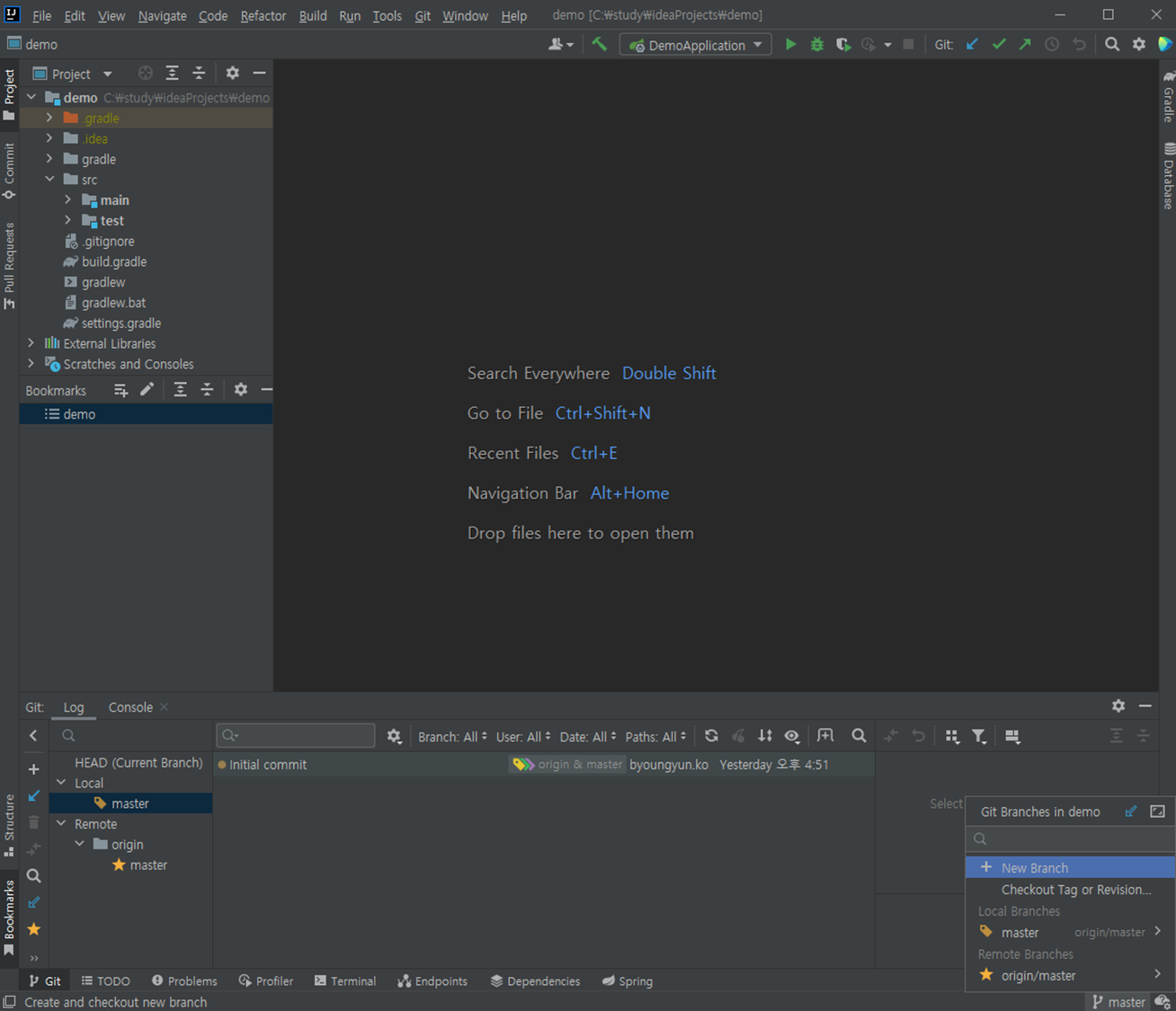 아래 명령어를 윈도우 cmd창이나 git bash나 IntelliJ Terminal 중 아무데서나 입력해준다.