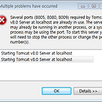 Tomcat을 여러개 띄우려고 하면 위와 같은 에러가 발생한다. Port가 충돌났기 때문이다. 이럴 때는 아래의 2가지 방법중 한가지로 해결 할 수 있다. server.xml에서 직접 수정- tomcat 설치폴더/conf로 이동- server.xml 파일 메모장으로 열어서 아래와 같이 수정 => port 변경 - => port 변경※ redirectPort는 https요청이 들어왔을 때 사용되는 Port이므로 특별한 이유가 없으면 수정하지 않도록 한다. - => port 변경※ redirectPort는 https요청이 들어왔을 때 사용되는 Port이므로 특별한 이유가 없으면 수정하지 않도록 한다. Eclipse에서 수정
